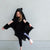 • Aus weichem schwarzem Samtstoff gefertigt, verziert mit einem goldenen Mond- und Sternenprint, komplett mit Kapuze, elastischen Bündchen und Druckknopfverschluss.