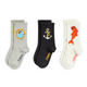 Coole Socke(n) "Clover" aus GOTS-zertifizierter Bio-Baumwolle und Polyamid Mischung von Mini Rodini. Mit 6 unterschiedlichen Motiven. Die Socken sind weich im Griff, angenehm dehnbar und haben verstärkte Zehenkappen und Fersen. M.Rodini ist unter jedem Fuss aufgedruckt.
