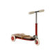 Ein Roller mit Holzdetails. Dieser Scooter hat einen Metallstab als Lenker, der dafür sorgt, dass Mäuse mit Magneten in den Händen auf dem Brett bleiben können. Ein kleines Gummiband ist auf dem Board angebracht und sichert die Füsse.