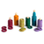 Holzfiguren Nins mit Ringen und Scheiben - komplementäre Farben, 60-teilig