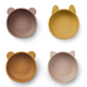 Sweet bowls "Iggy Golden Caramel Blue Multi Mix" made of 100% BPA-free silicone from Liewood. Eating is even more fun with cute animal ears. Whether snacks, muesli or soup, the bowls are simply practical .