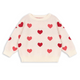 Warm "Belou Cherry" knit cardigan by Konges Sløjd. Soft and warm in a chunky wool blend. It features ribbed cuffs, a round neck, and mother-of-pearl buttons on the front.