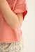 Soft slub T-shirt "Brise" by Cozmo. Made from very light, flowing, and highly breathable slub cotton. Round neckline with snap fasteners on the left shoulder. Short sleeves. Sewn-on ruffled chest pocket.