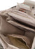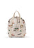 The Clover backpack has a large compartment for books, a padded compartment for a lunchbox, and an external pocket for a water bottle. It features a practical buckle and drawstring closure.